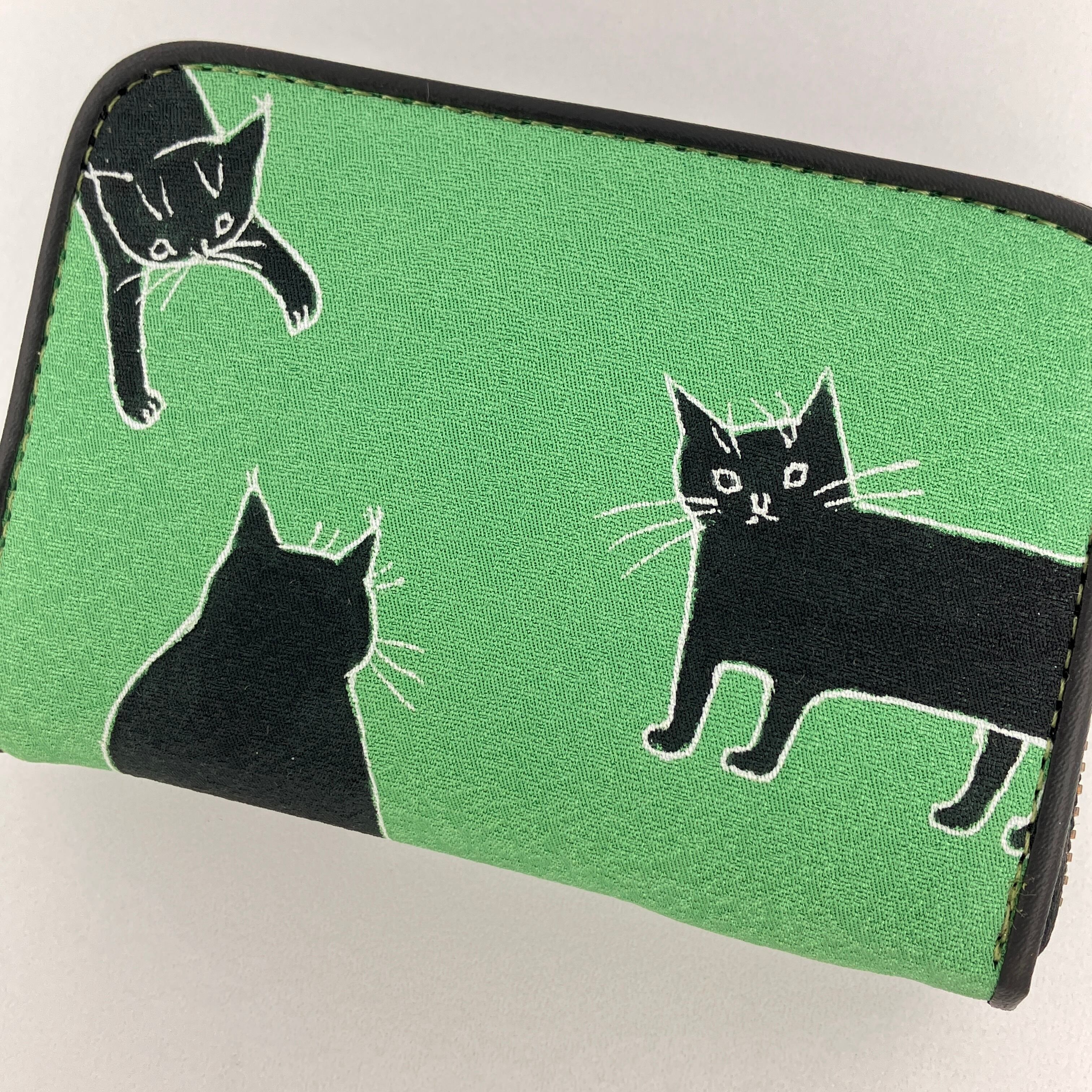 黒とグリーンのシンプルな色使いが黒ネコを引き立てています。