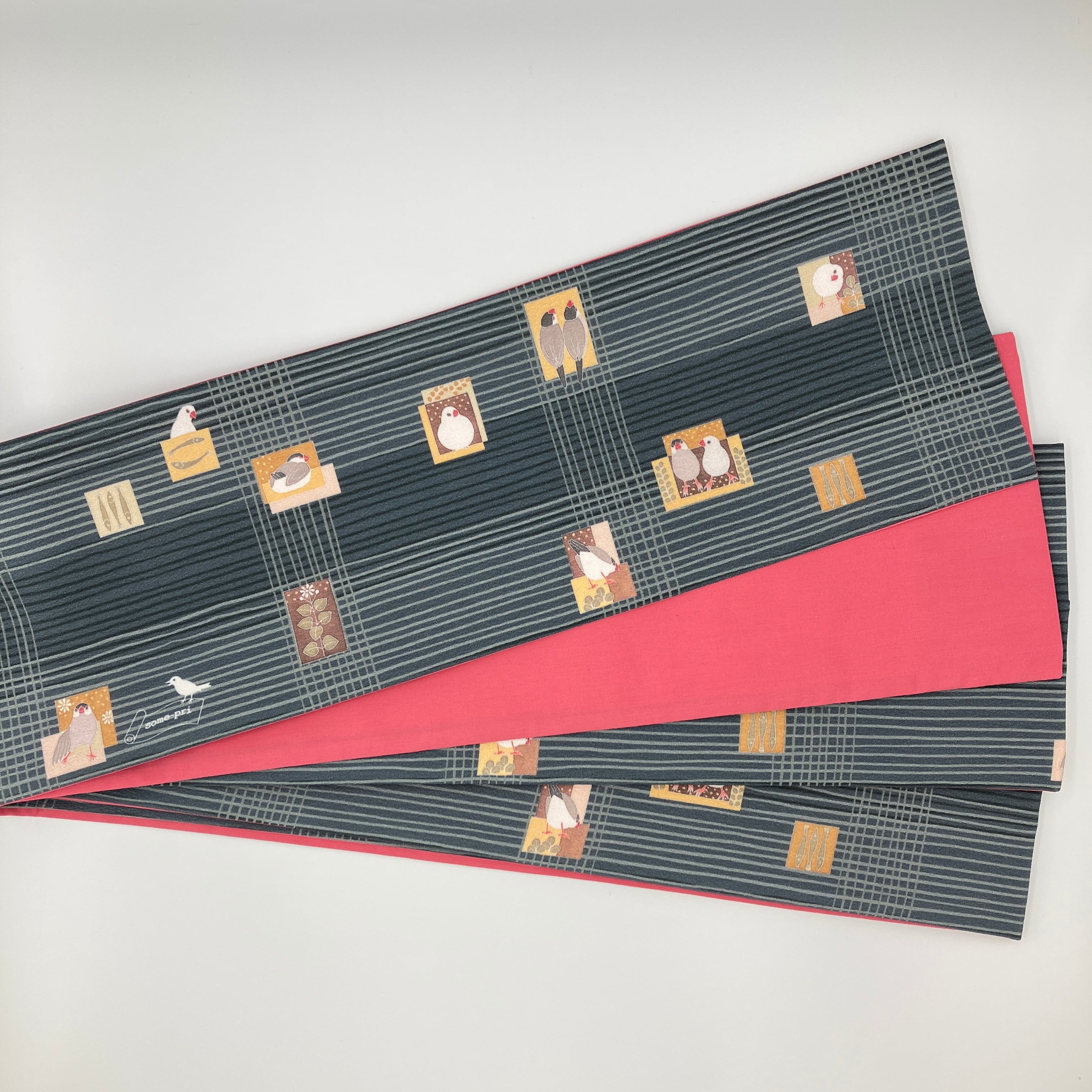 【受注品】some-pri 半幅帯「かわいい文鳥」グレー
