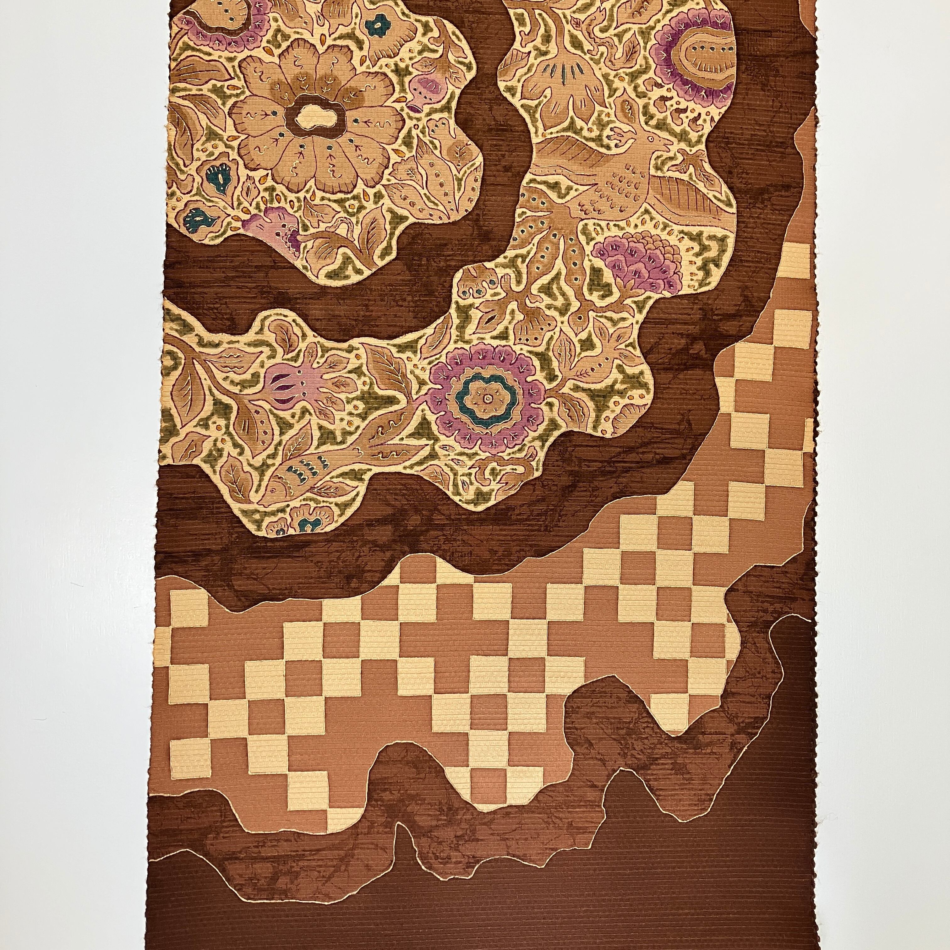 市松模様の更紗のデザインが特徴的で、シンプルながらも奥深い美しさを持っています。