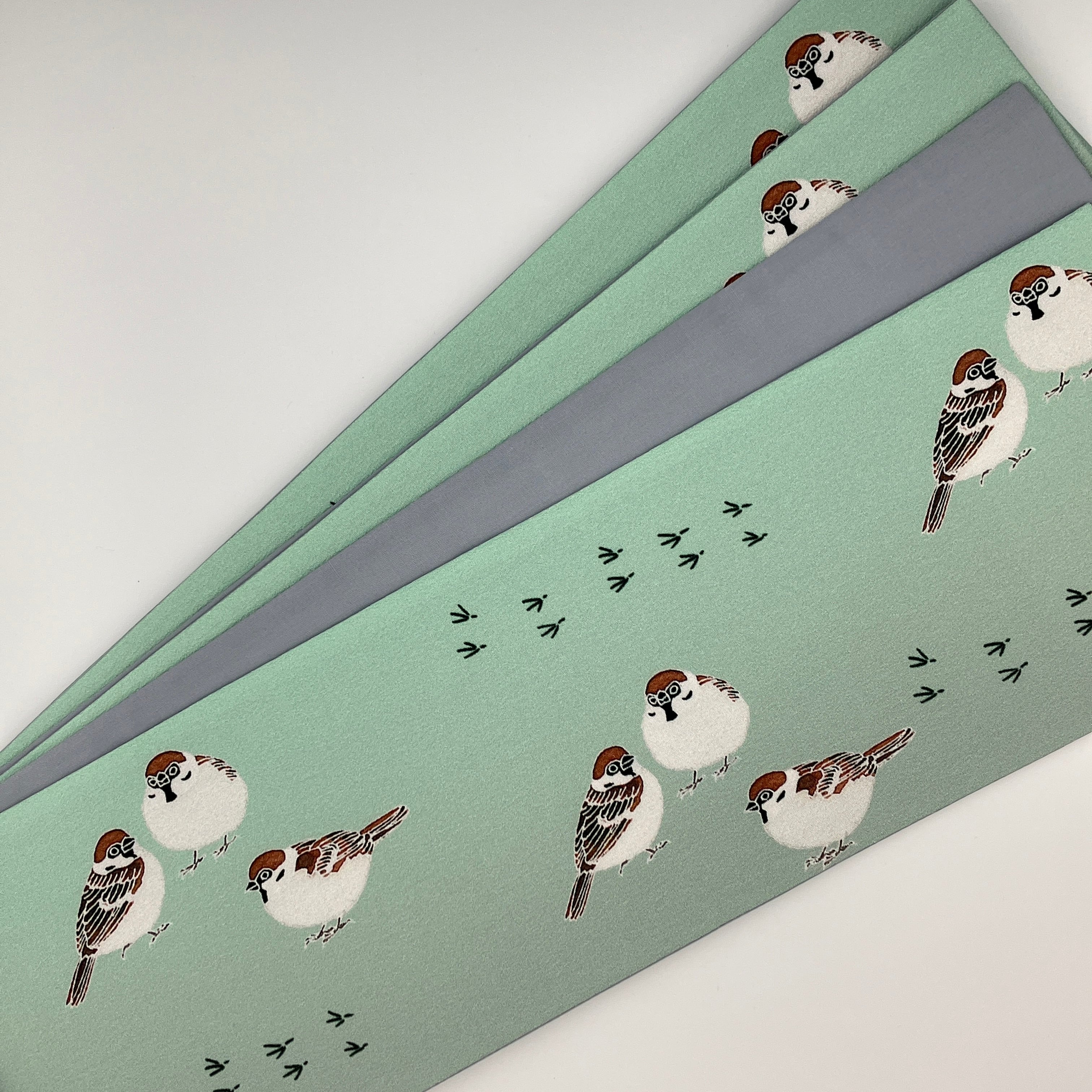 【受注品】some-pri 半幅帯「雀たち」青磁色