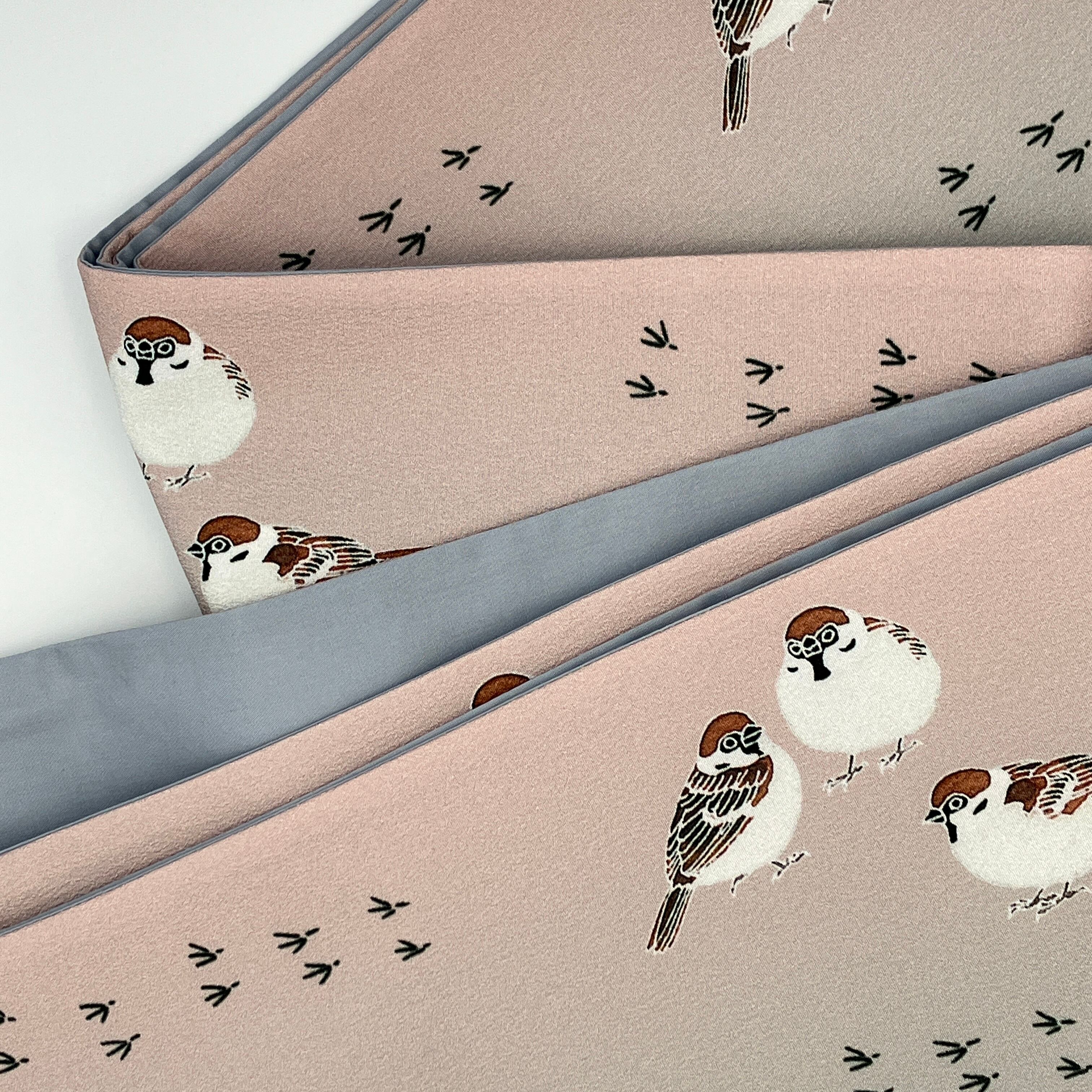 【受注品】some-pri 半幅帯「雀たち」薄桃色gd