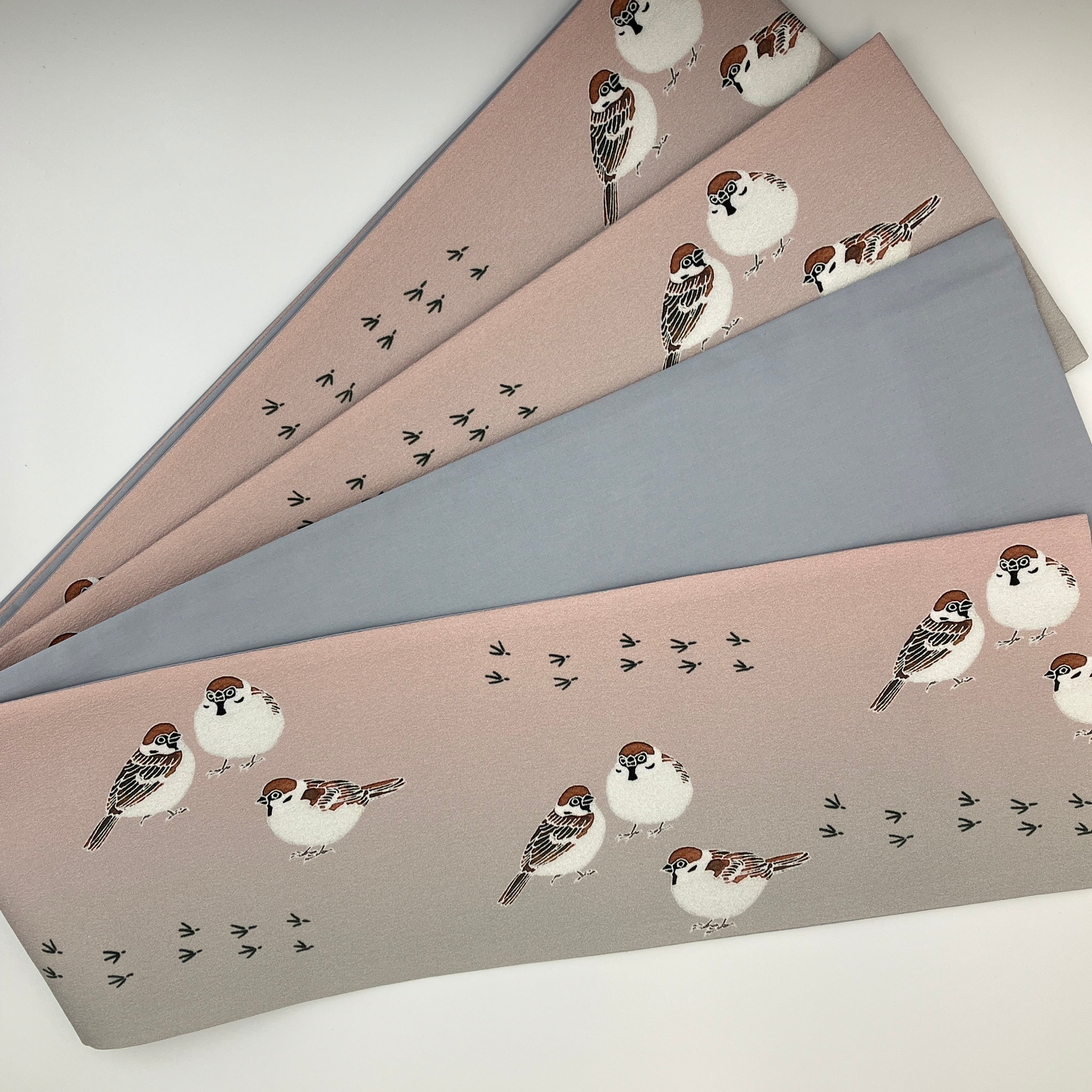 「雀たち」薄桃色グラデーション