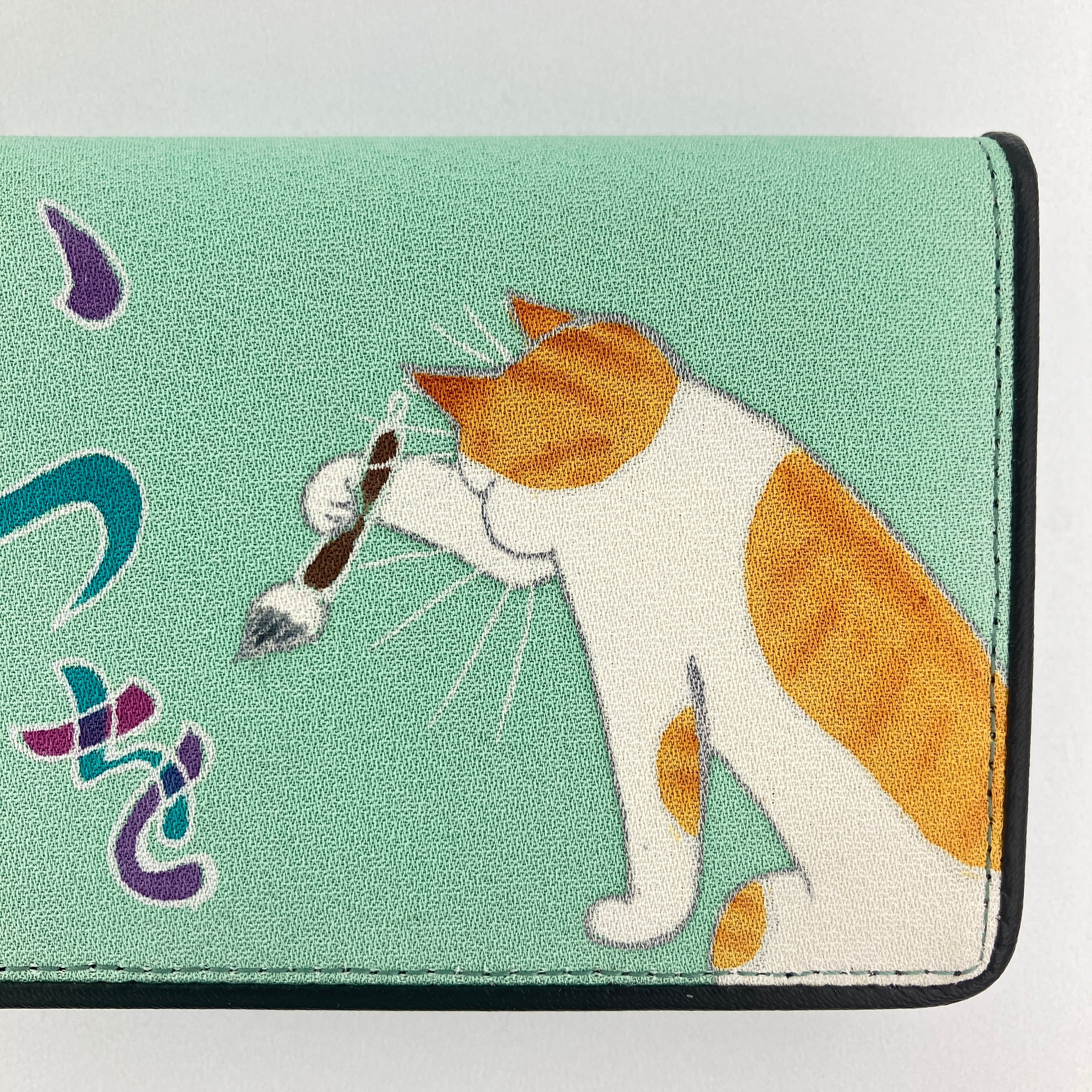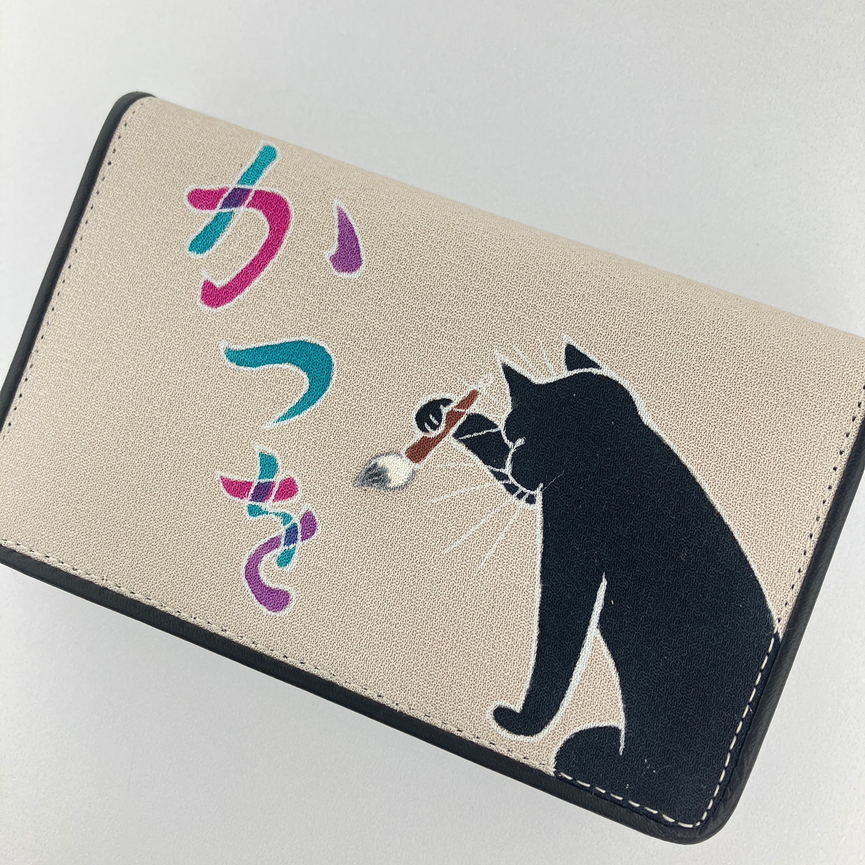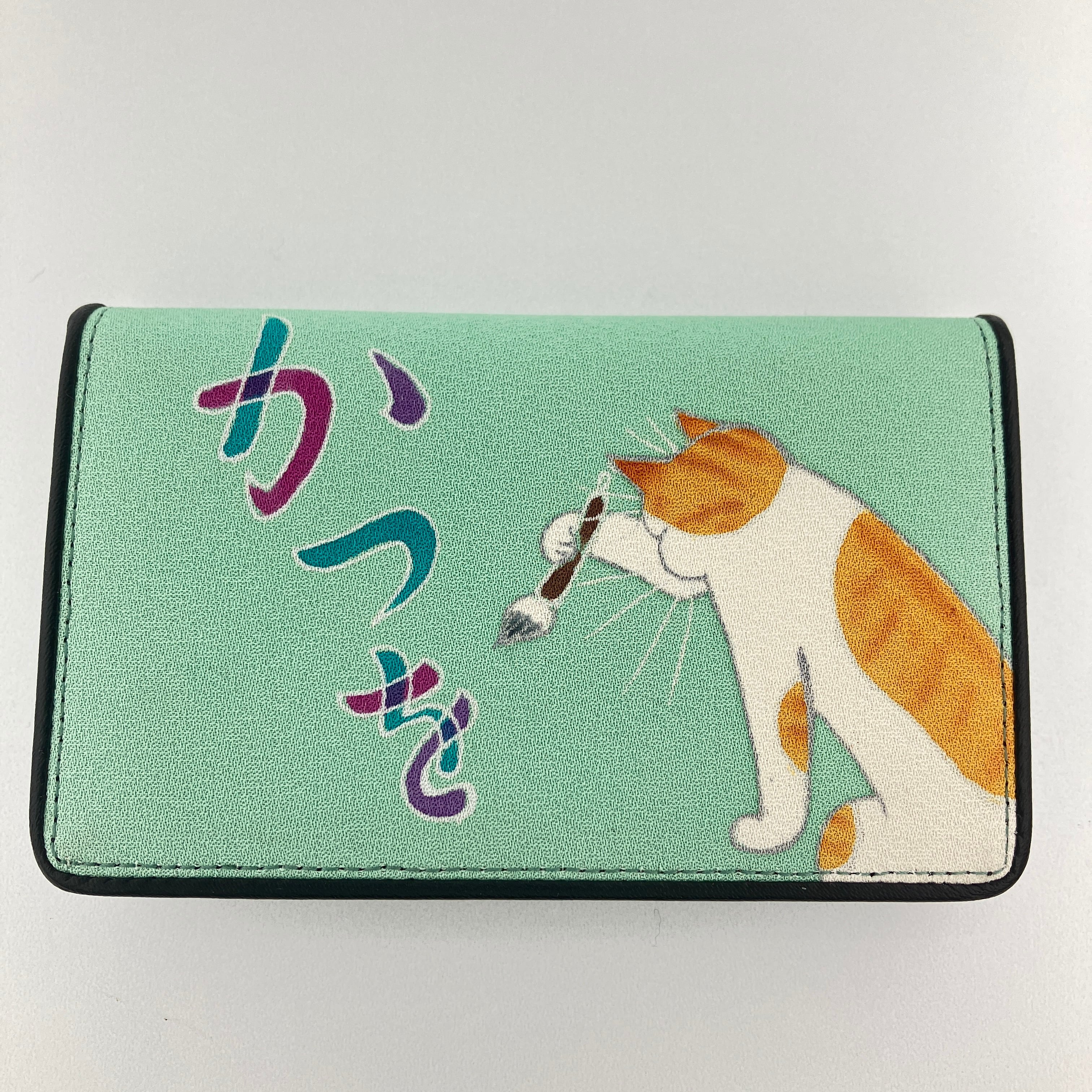 手描友禅カードケース(名刺入れ)「かつをしらす」(ベージュ/グリーン)