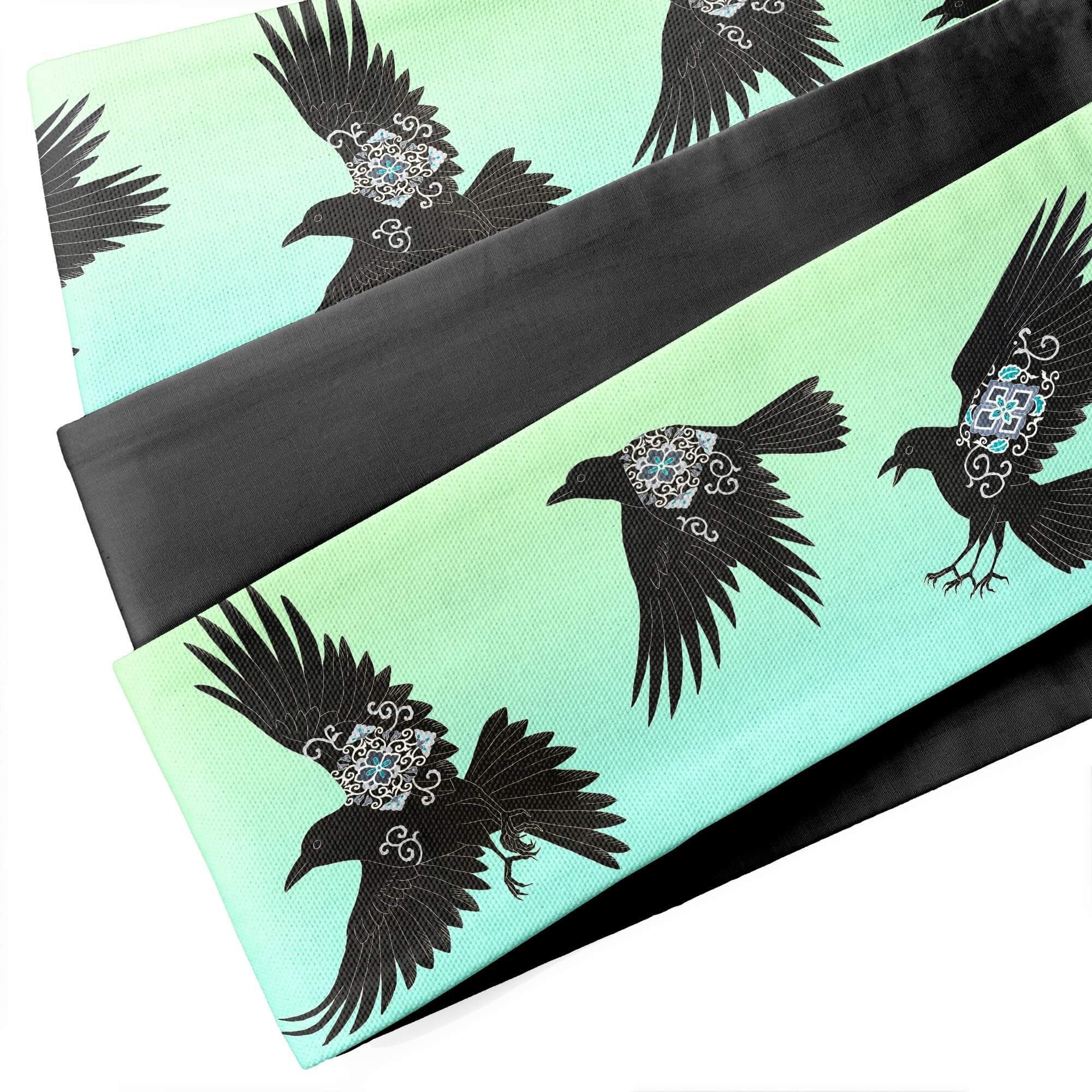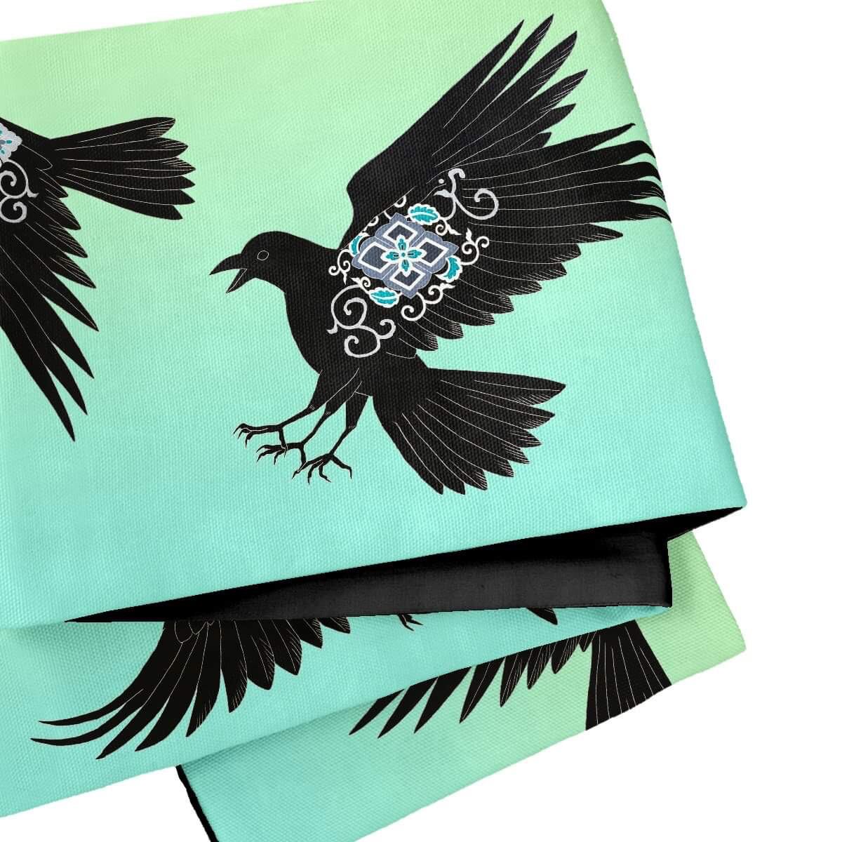 カラスたちの体の紋様は、濡羽色を意匠的に表現したものです。