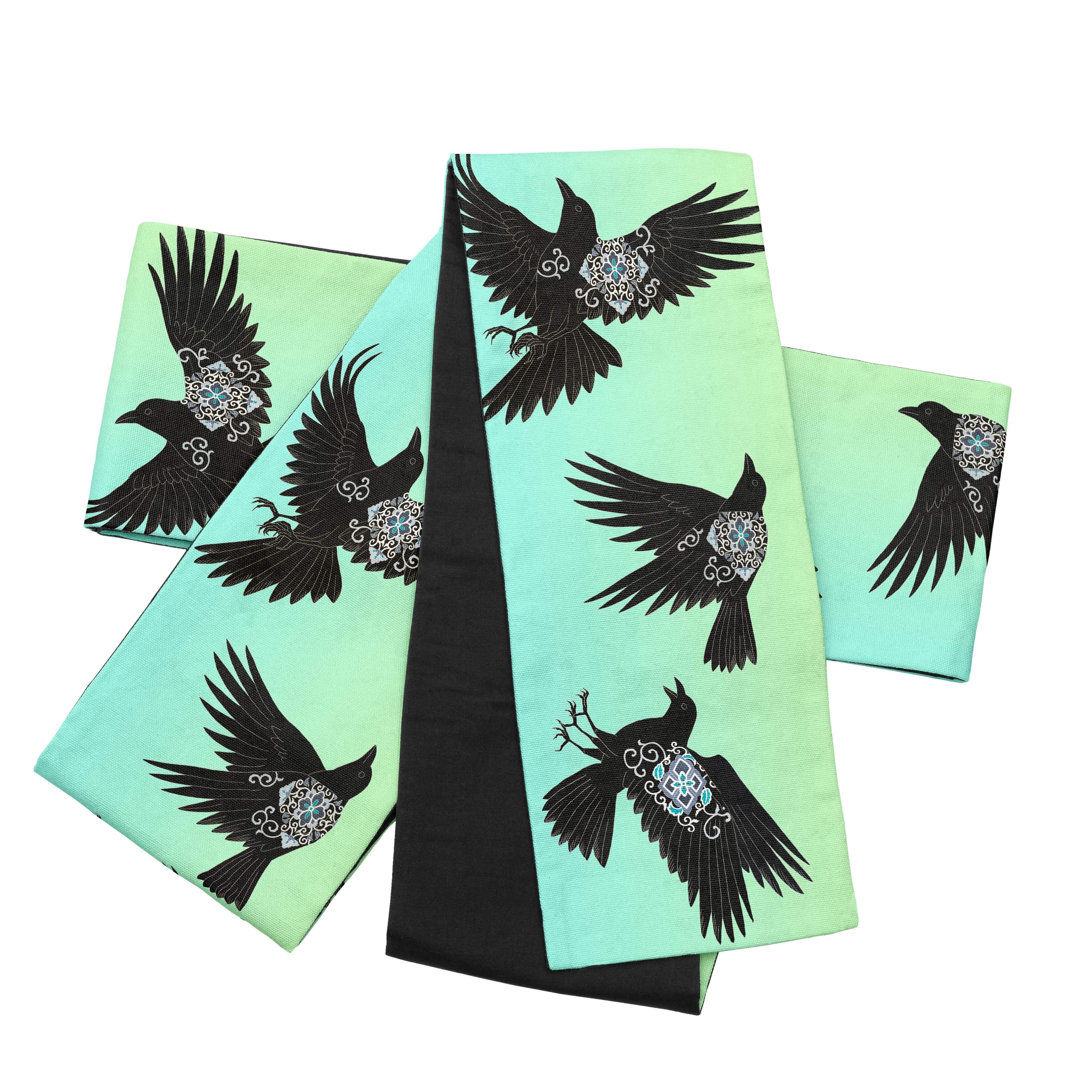 【受注品】some-pri 半幅帯「大ヤタガラス」グリーンgd