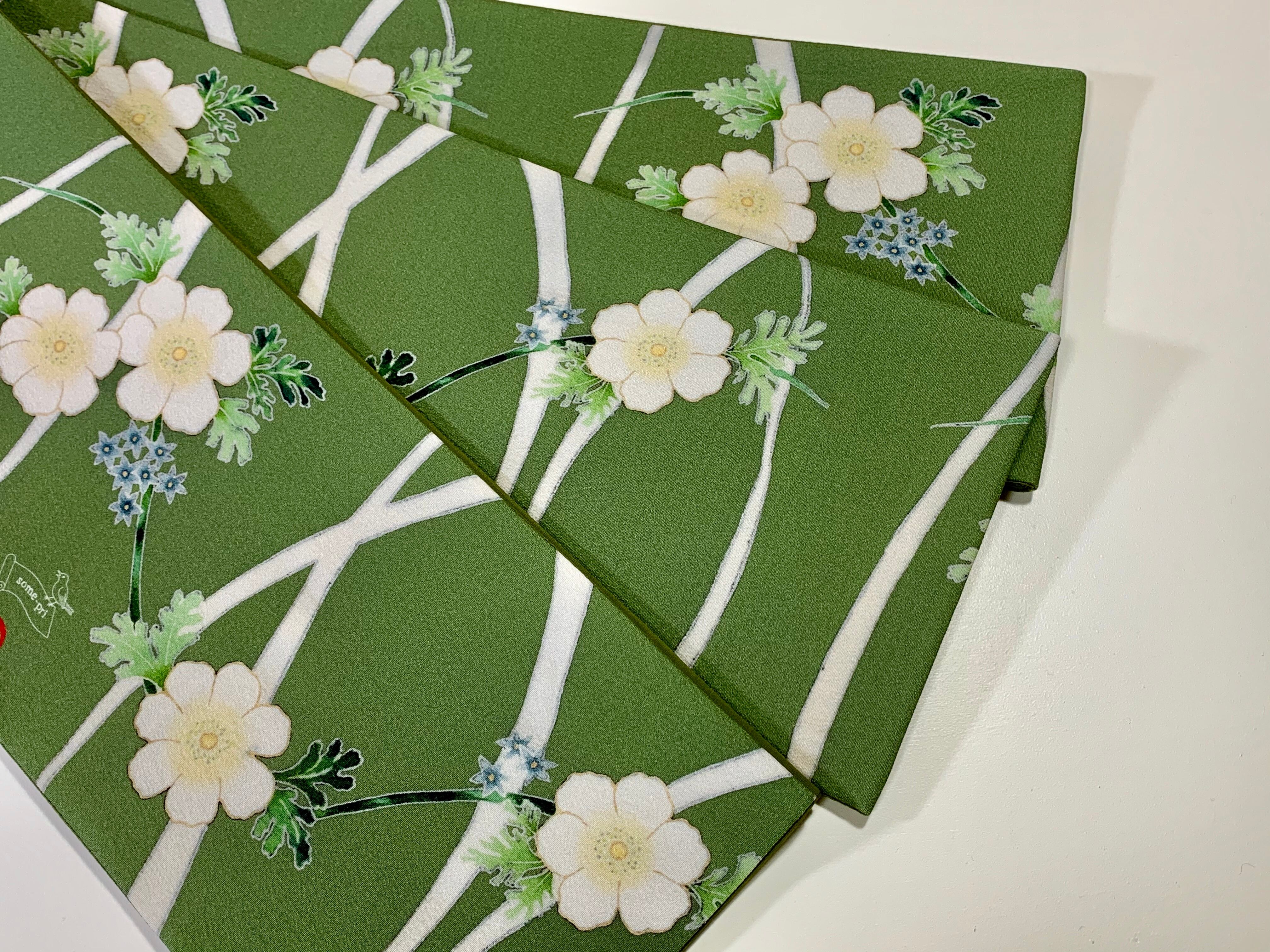 【受注品】some-pri 半幅帯「白い花」グリーン