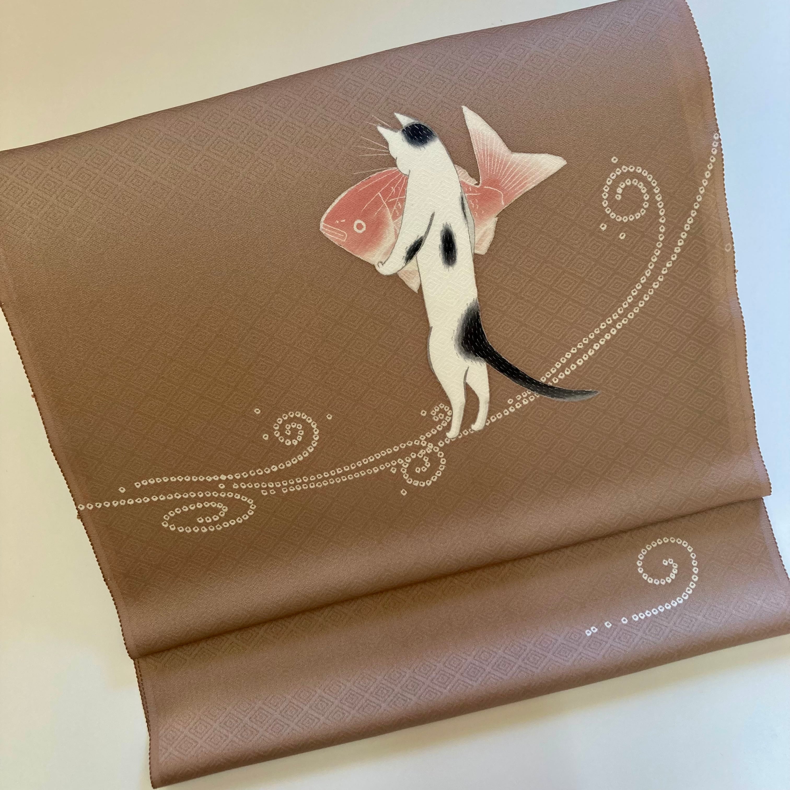 【訳あり品】SALE名古屋帯「鹿の子波模様とタイ猫」